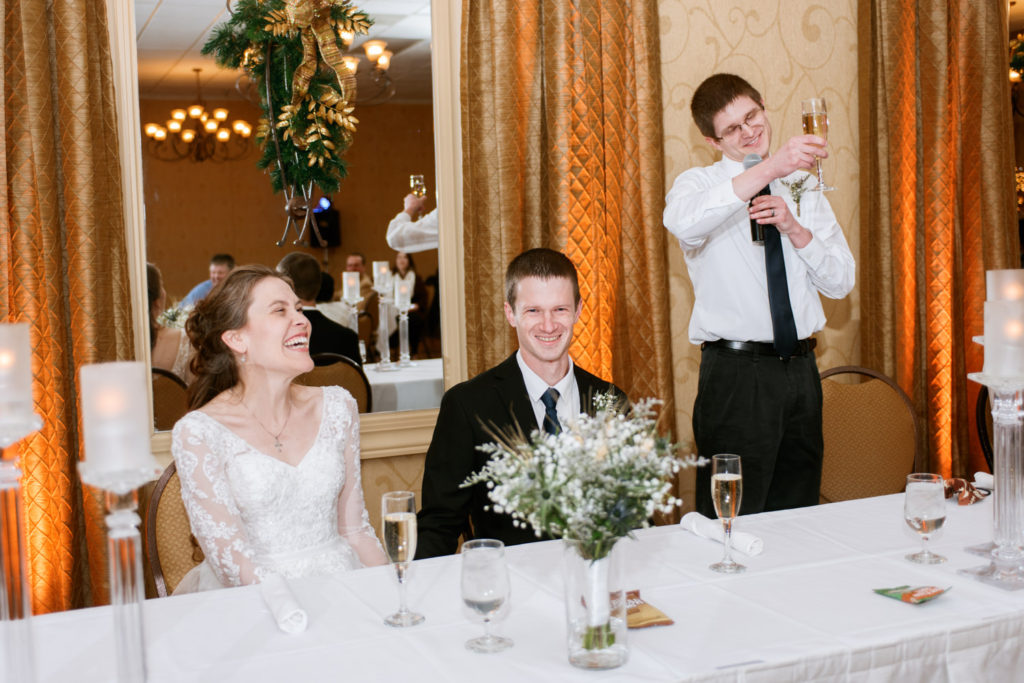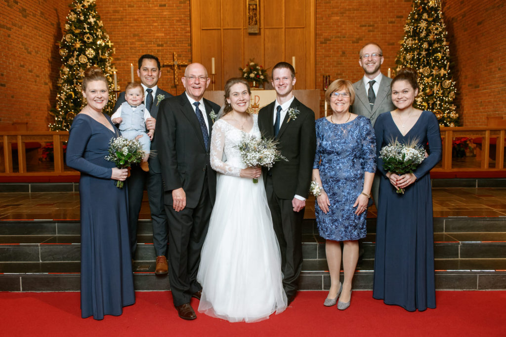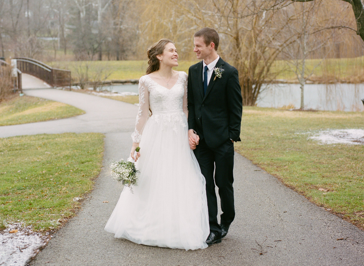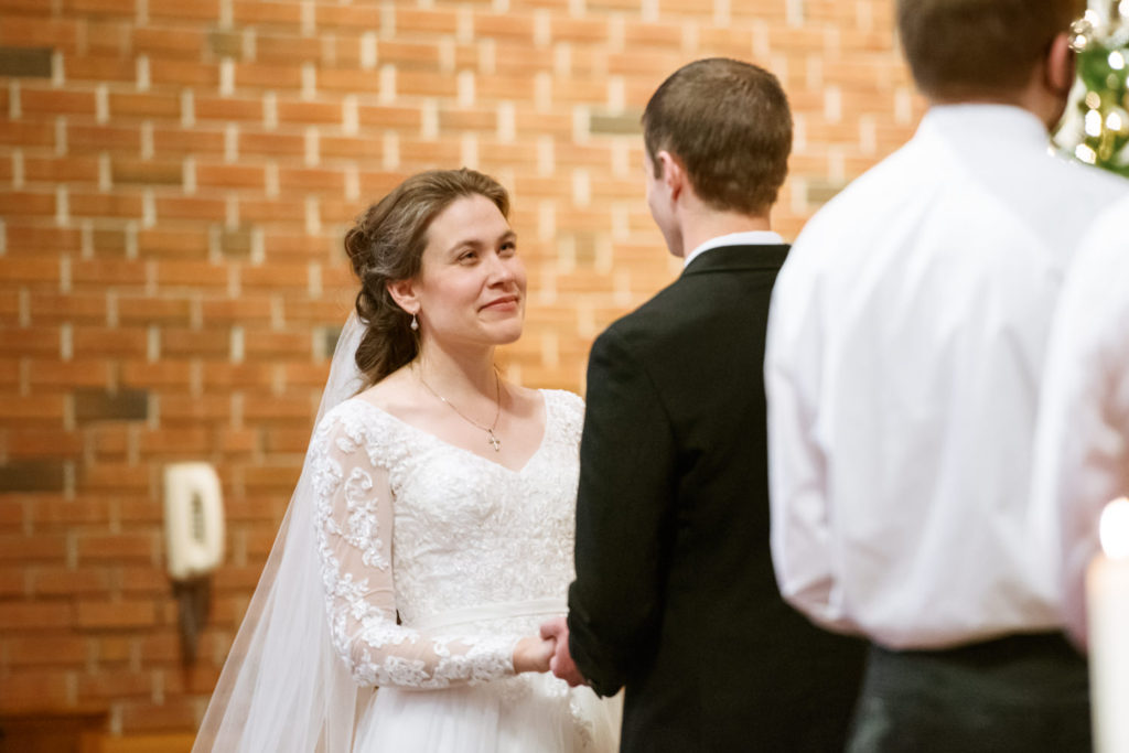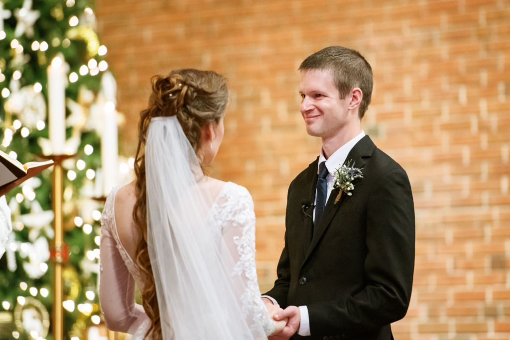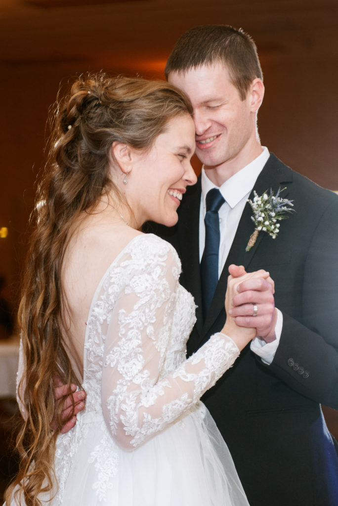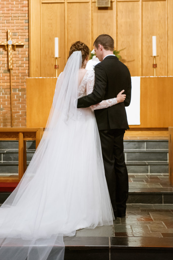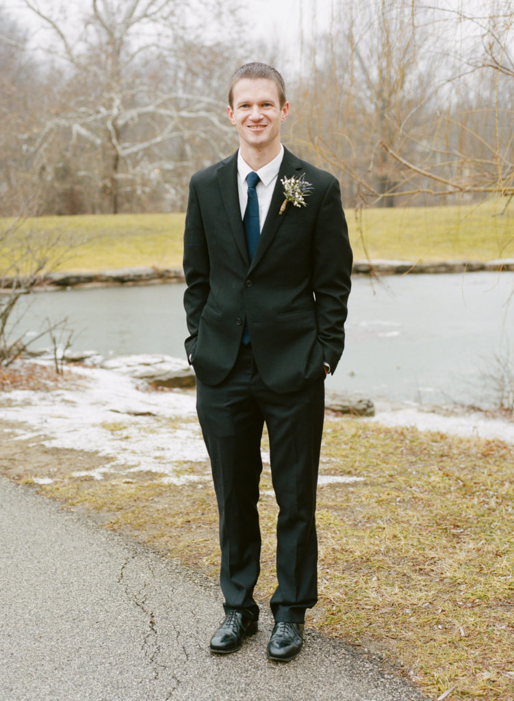 The first time I spoke with Kelly, she mentioned our mutual love of classic writers such as Jane Austen and the Bronte sisters. So it was perfectly fitting that her and David’s wedding happened to be on a misty winter day reminiscent of a classic novel setting on the foggy English moorside. Together with her textured thistle and baby’s breath bouquet and long-sleeved lace wedding gown, Kelly’s vintage romance wedding day was complete.