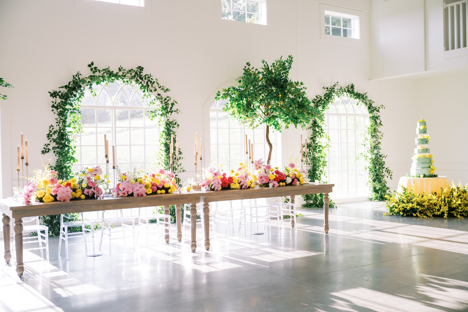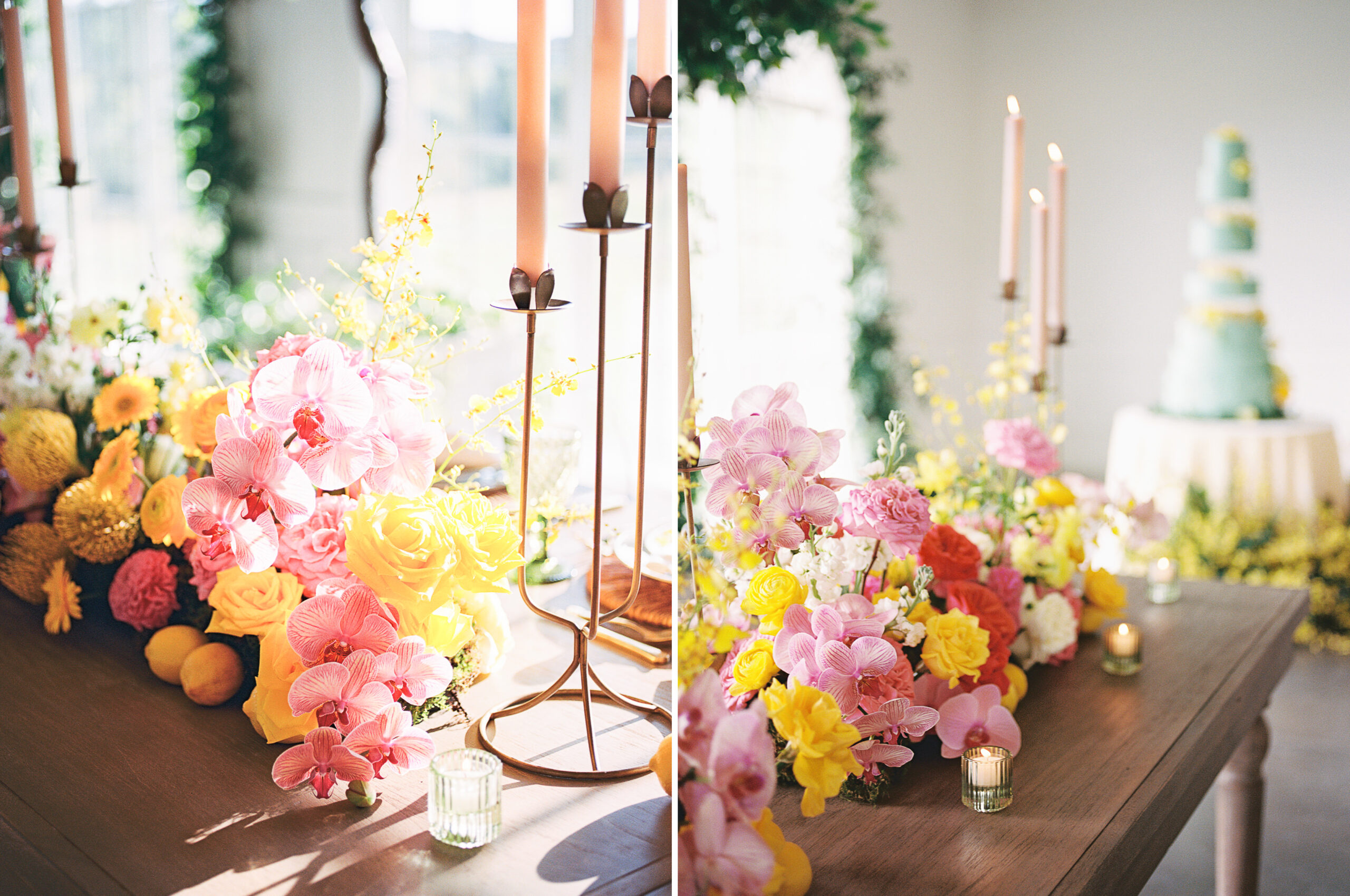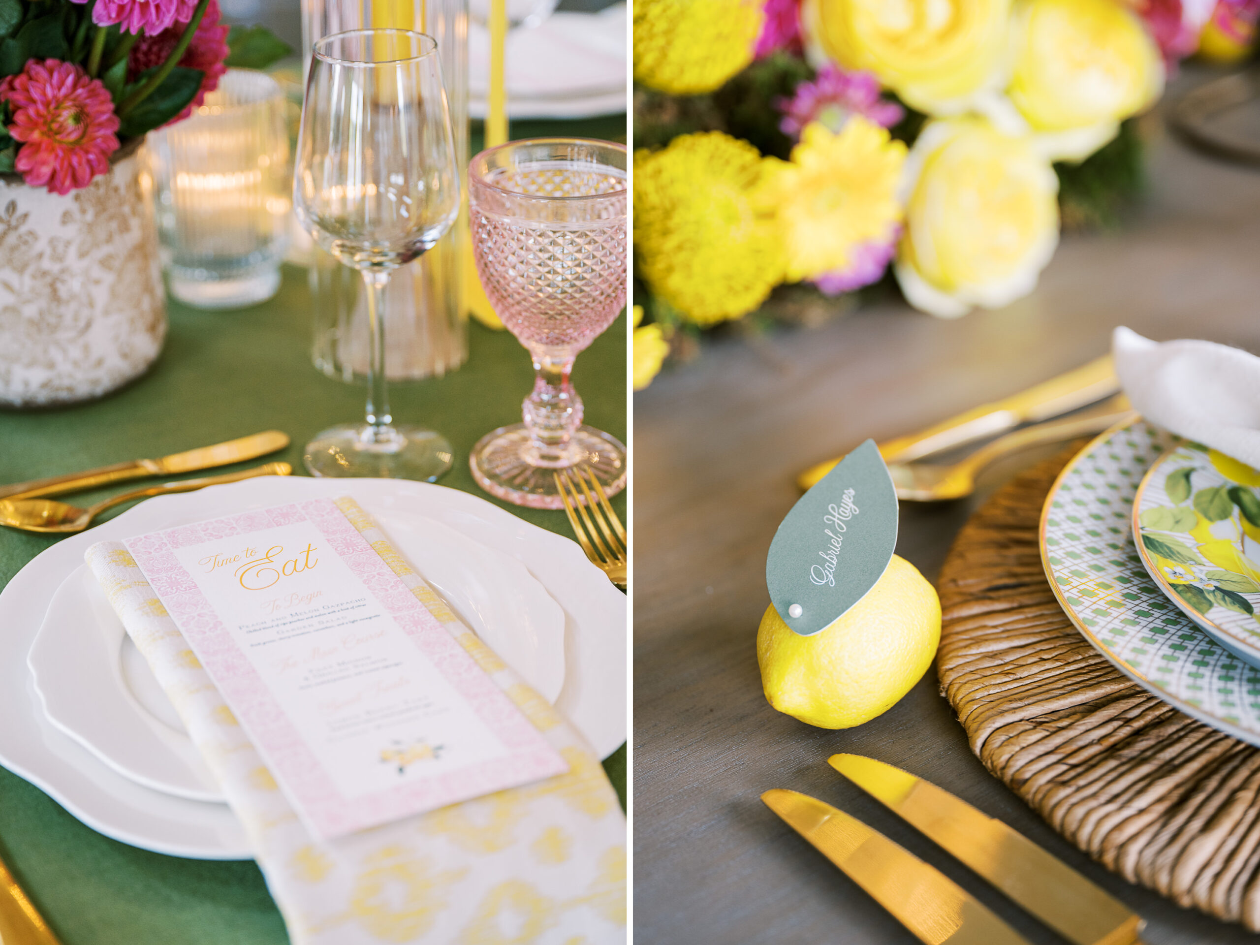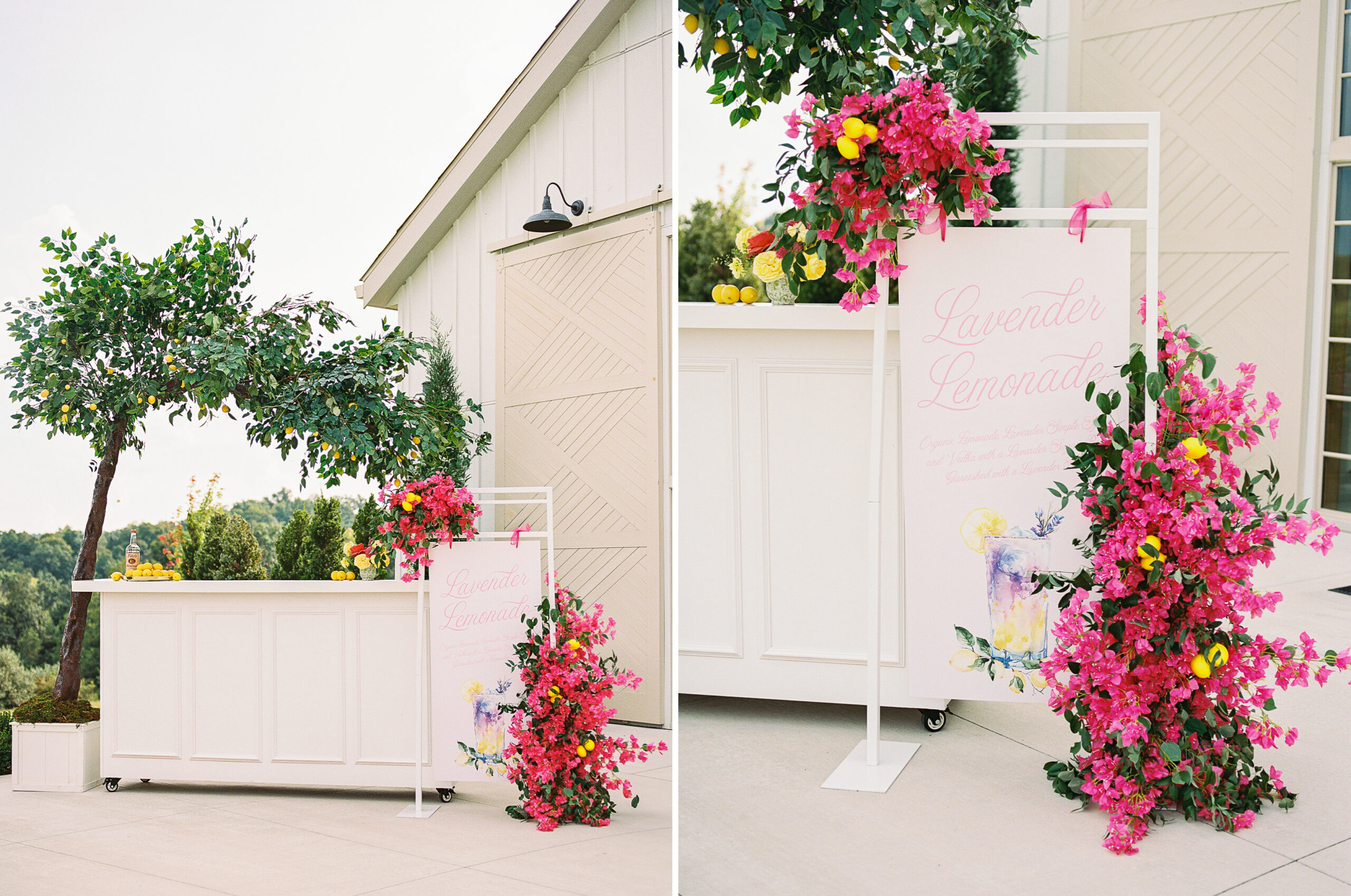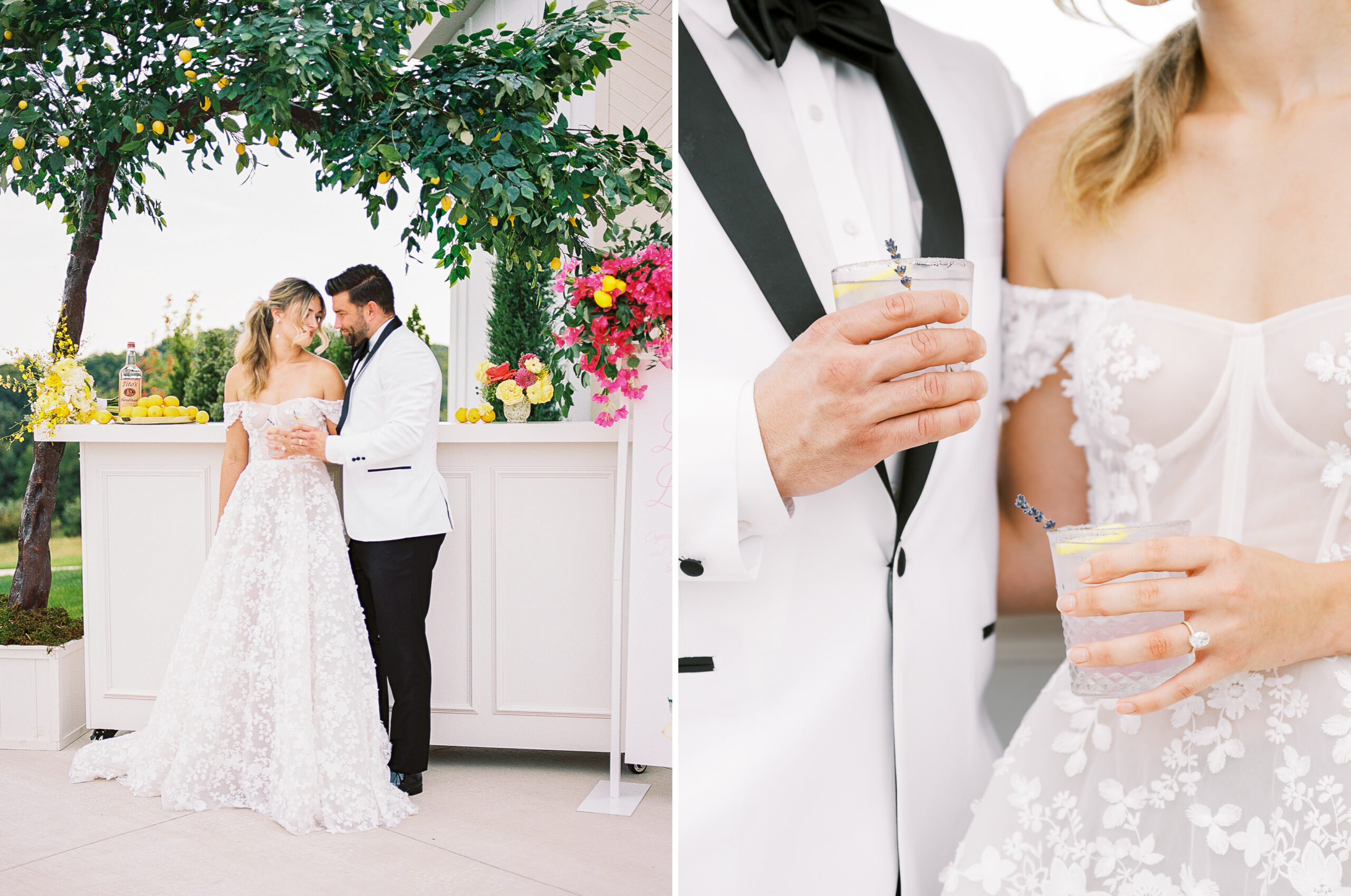 “For Love and Lemons” was the theme of this colorful, summertime editorial at Westwind Hills. Bright pink and yellow florals are perfectly paired with lemon trees, patterned linens, and vintage-inspired china. The summertime vibes continue with lavender lemonade signature drinks, lemon-lined stationery, and a show-stopping lemon-and-floral adorned cake.