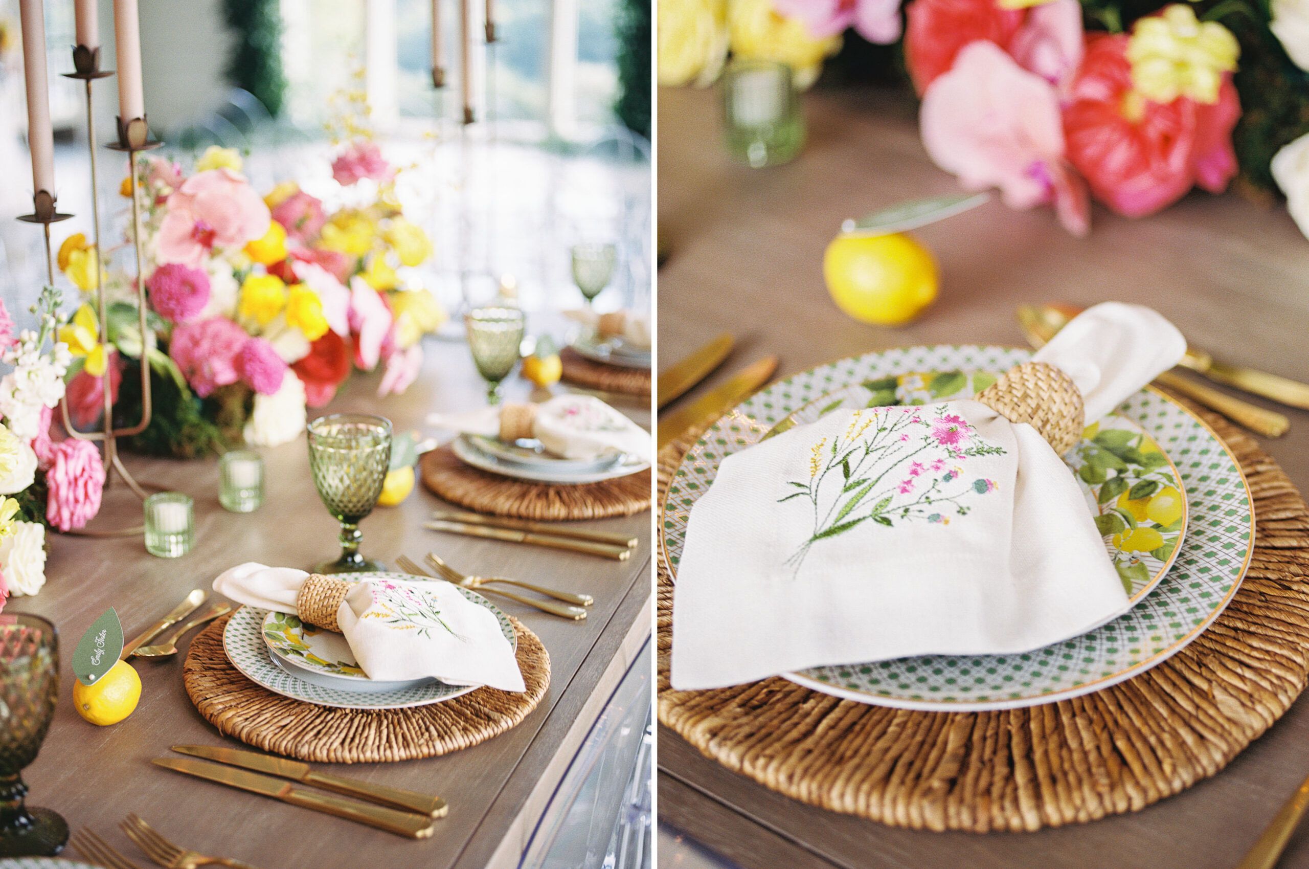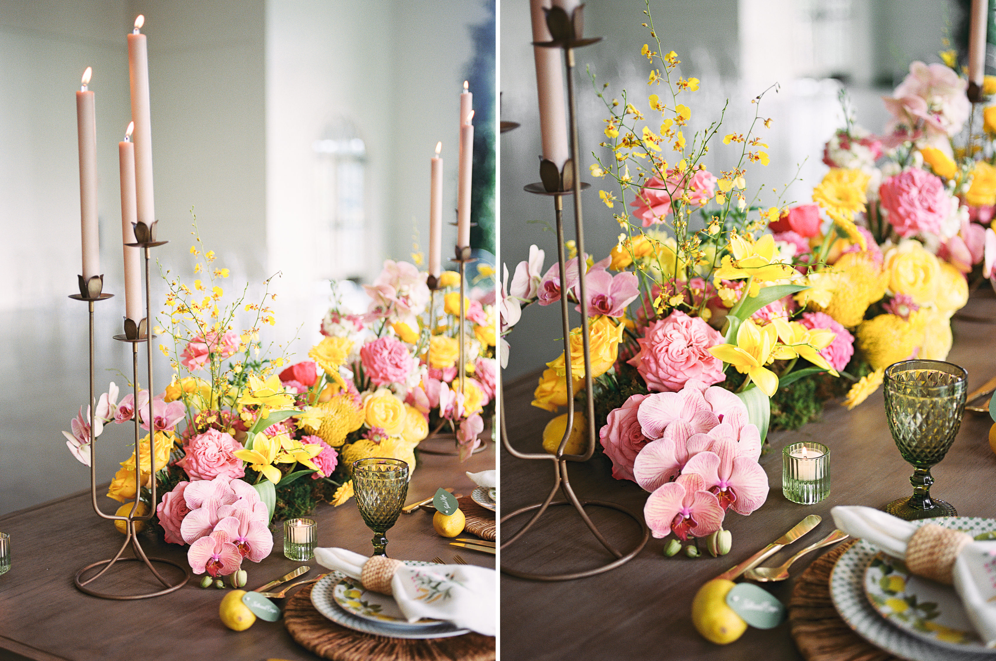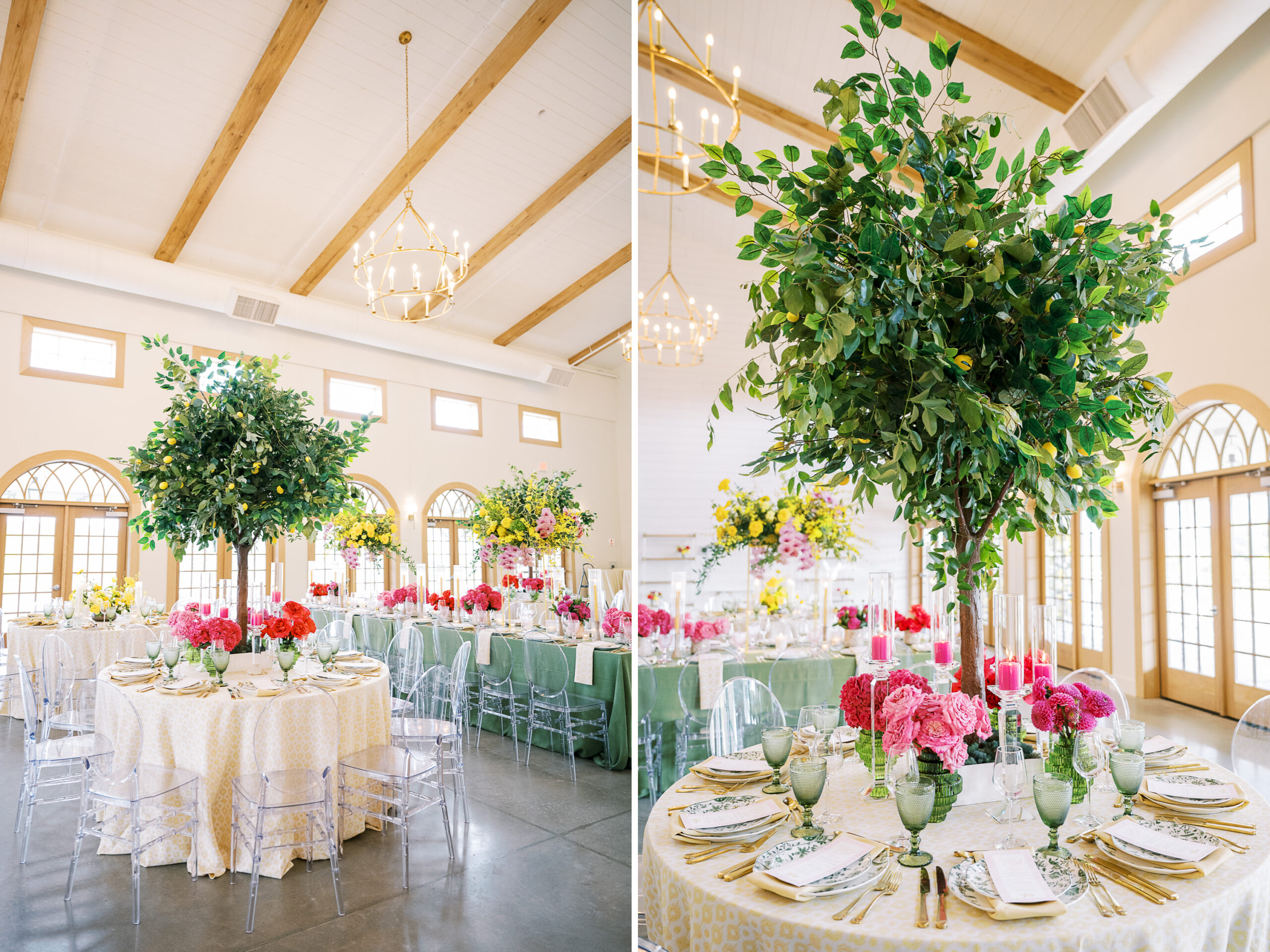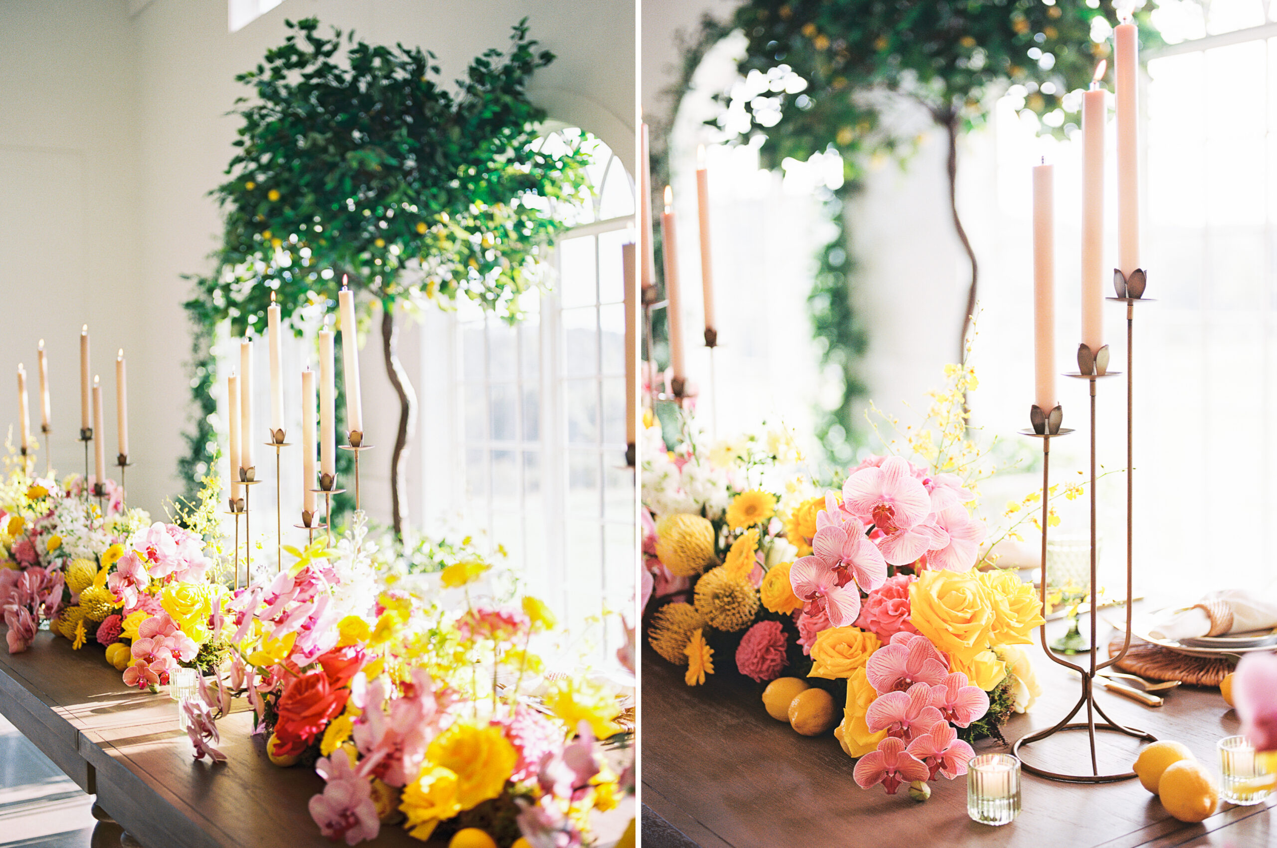 “For Love and Lemons” was the theme of this colorful, summertime editorial at Westwind Hills. Bright pink and yellow florals are perfectly paired with lemon trees, patterned linens, and vintage-inspired china. The summertime vibes continue with lavender lemonade signature drinks, lemon-lined stationery, and a show-stopping lemon-and-floral adorned cake.