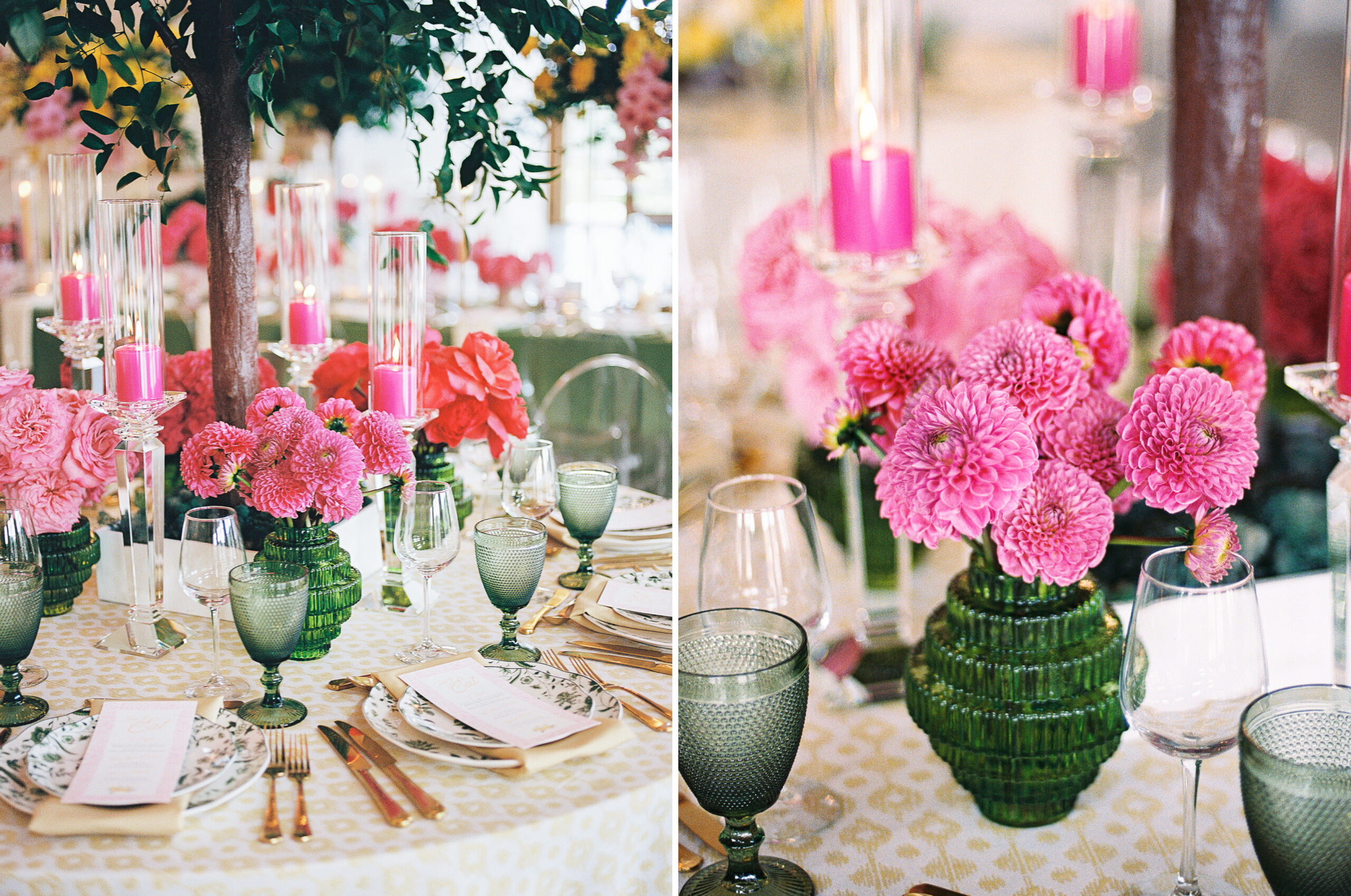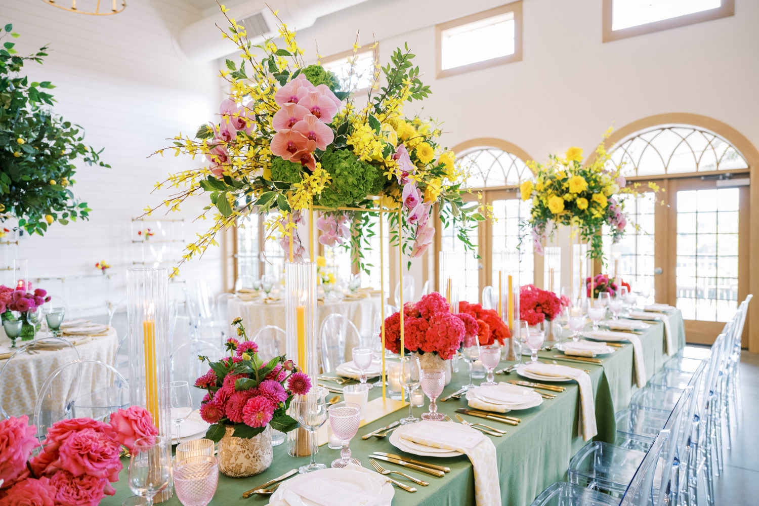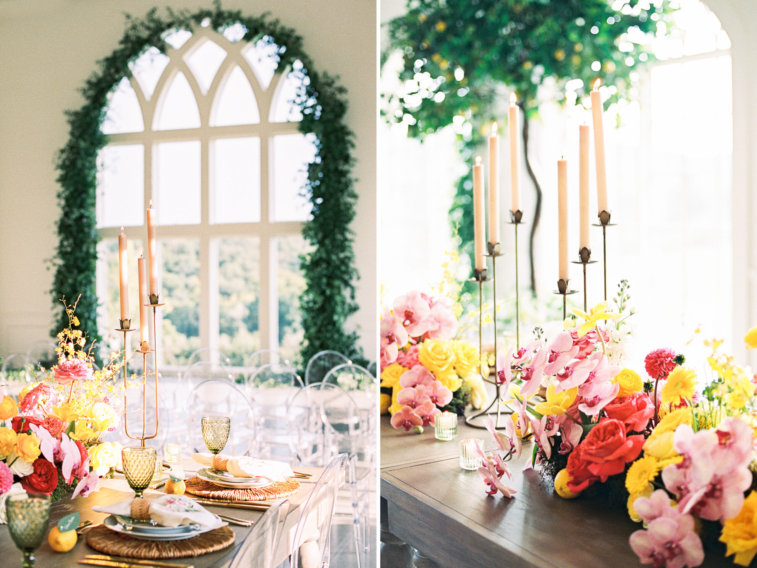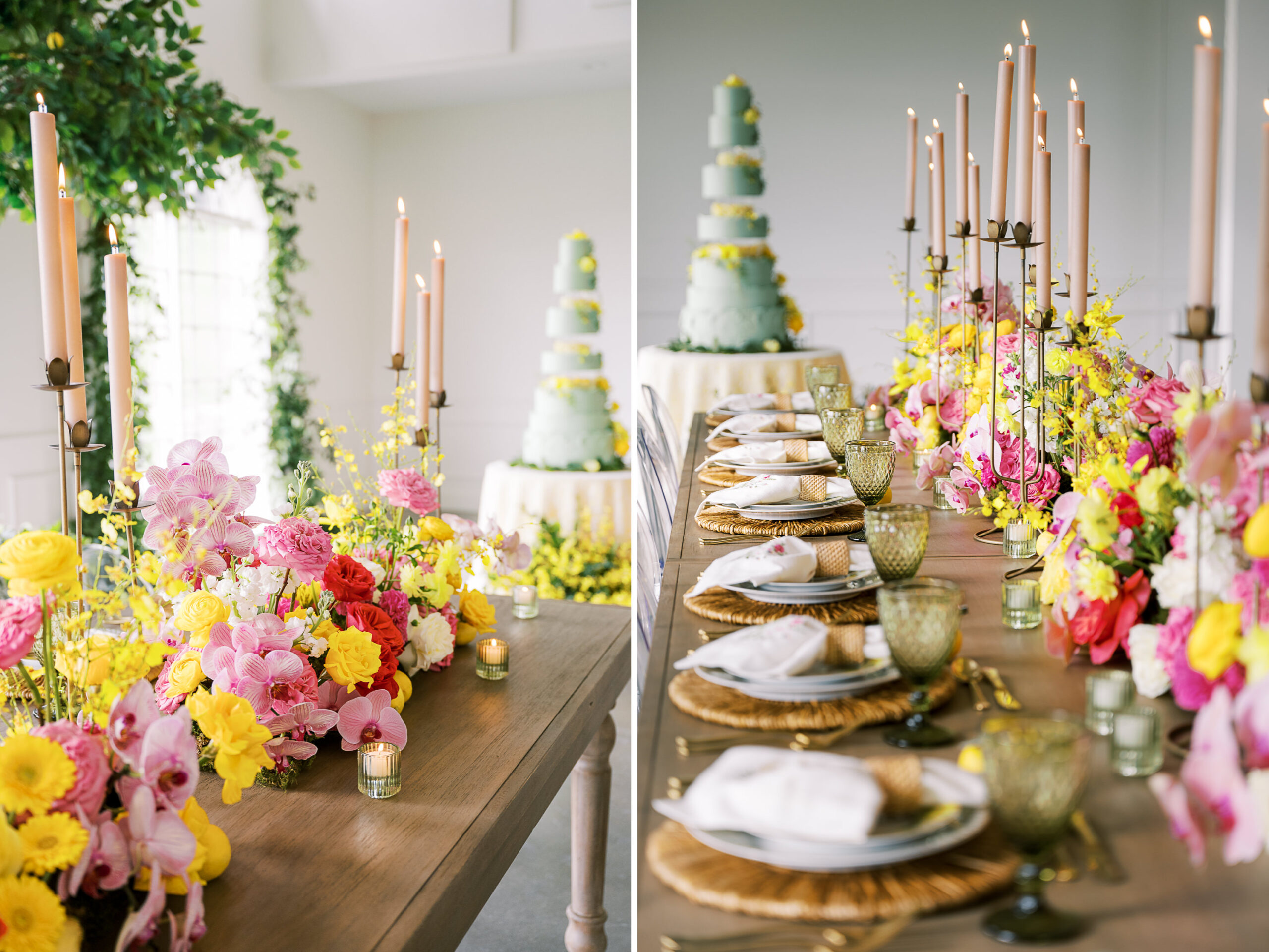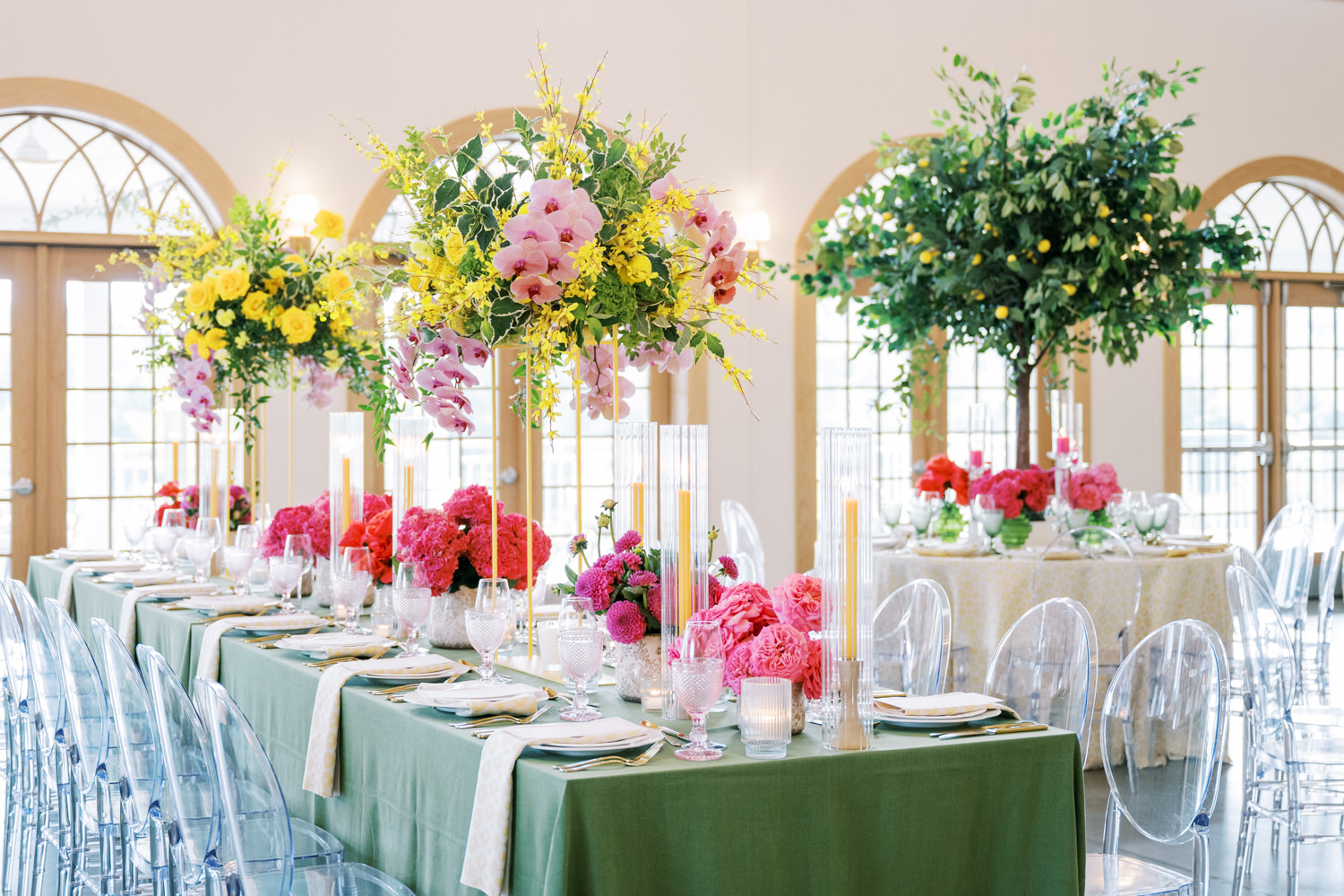 “For Love and Lemons” was the theme of this colorful, summertime editorial at Westwind Hills. Bright pink and yellow florals are perfectly paired with lemon trees, patterned linens, and vintage-inspired china. The summertime vibes continue with lavender lemonade signature drinks, lemon-lined stationery, and a show-stopping lemon-and-floral adorned cake.